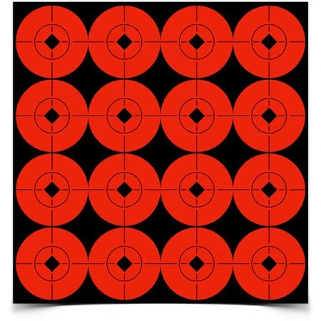 Convenient, self adhesive Target Spots create instant bullseyes for all types of target practice! The high-contrast, fluorescent red color lets you see a sharper sight picture and bullet holes more clearly for better scores and smaller groups. Try all sizes for different distances and uses: rifle, shotgun, handguns and even archery. All Target Spots have a self adhesive backing for easy use.