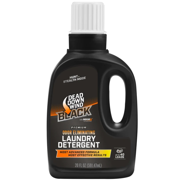 Dead Down Wind BLACK Premium Laundry Detergent, featuring NidorX™ technology, introduces an innovative 3-step formula that effectively traps, attaches to, and destroys odors. When combined with our ScentPrevent® enzyme formula, this detergent provides scientifically proven, immediate, and long-lasting odor elimination against even the most offensive scents. In addition to tackling tough odors, Dead Down Wind BLACK Premium Laundry Detergent cleans and deodorizes while removing stains from all hunting garments. Formulated to be safe for sensitive skin, it works well on a variety of materials, including carbon, technical, natural, and synthetic fabrics. This ecofriendly formula contains no biocides, making it gentle on both humans and the environment.