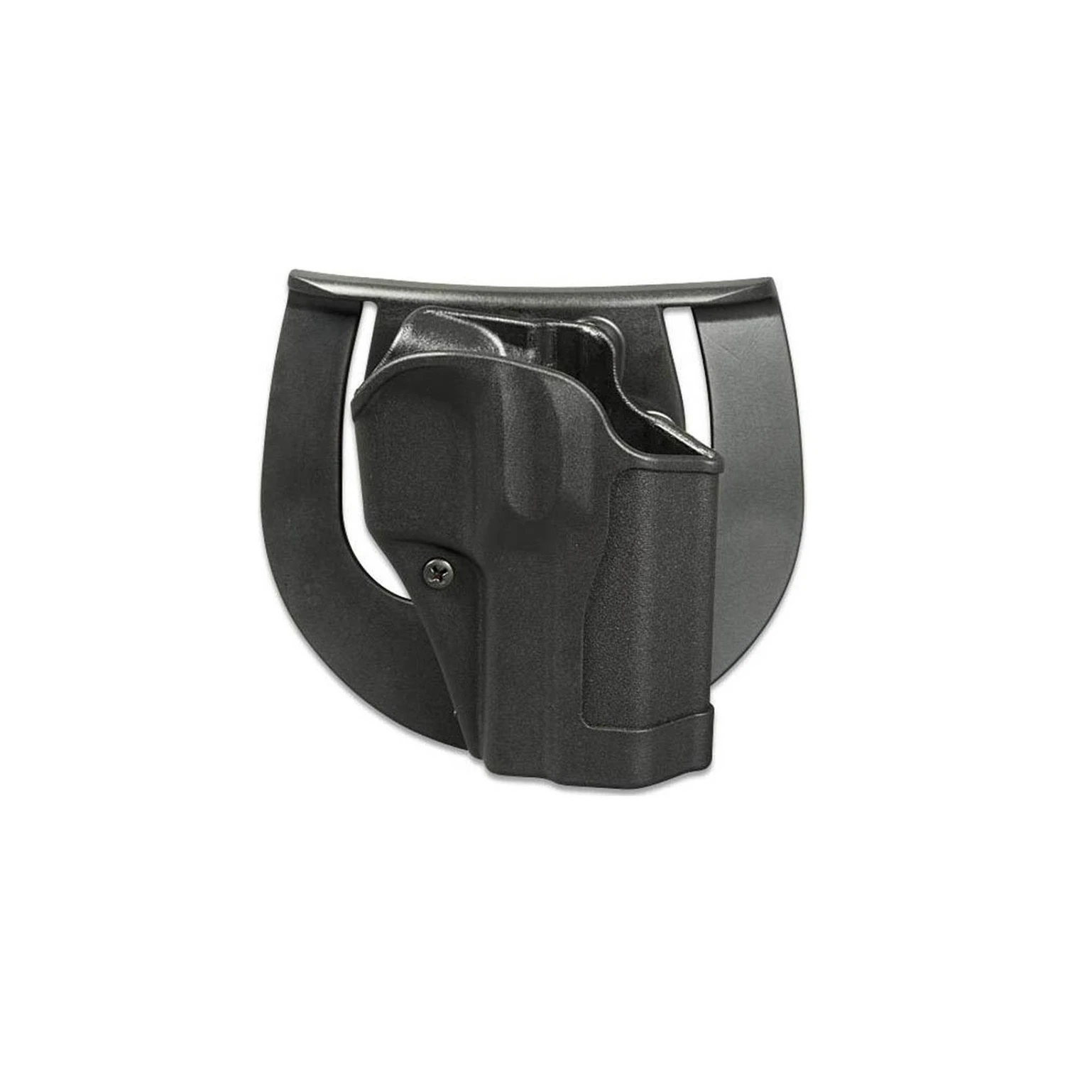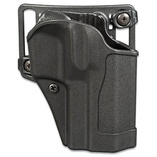 The Blackhawk ® Sportster Standard Holster is a rugged, rigid, synthetic holster with versatile carry options and integrated safety features. A pressure-adjustable detent retention system helps you customize how tightly the holster holds your pistol. The holster grabs onto your handgun’s trigger guard and secures your pistol with just the right amount of tension for safe carry, but won’t impede your draw. It comes ready for wear on your belt but you also receive a paddle attachment so you can wear it as a paddle holster. Durable, rigid construction Pressure-adjustable detent retention system Ready to wear on your belt Can be used as a paddle holster.