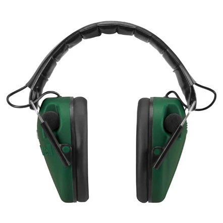 protect the shooter’s hearing. Two microphones – one in each cup – give the user true stereo sound and allow the user to identify the directional source of a sound. Runs on 2 AAA batteries