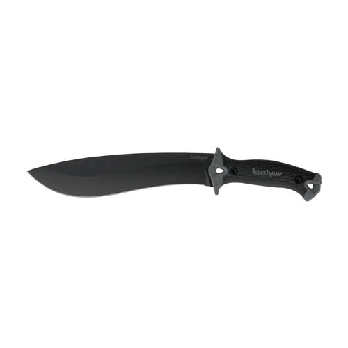 This Camp 10 model is built with a black finished blade and a black rubber overmold handle. It has a black powder coated carbon steel blade that will decimate anything in its path. The full tang handle features a comfortable rubber overmold and hard guards for a secure, ergonomic grip. Item includes a molded sheath with nylon belt loops and fasteners. Bushcraft like a pro with the Kershaw Camp 10.