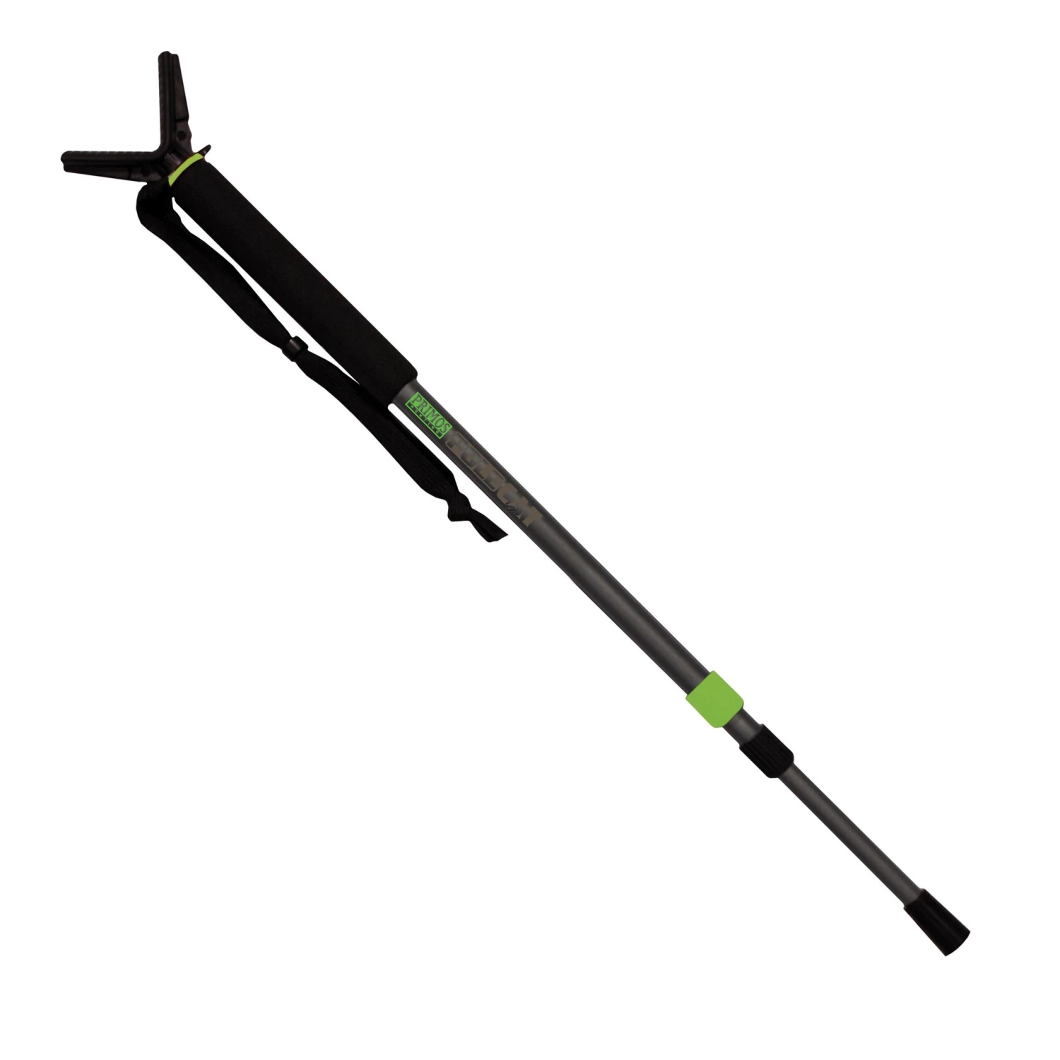 The best strength-to-weight ratio in the business makes this the most trusted monopod in the field. Seamless tempered-aluminum tubes with patented Posi-Lock™ adjustment are bench stable lightweight mobile and silently adjust to terrain with a quick quarter-twist. The rugged nylon yoke is strong lighter than steel and will never rust. The tactile rubber shooting V grips your stock for a steadier shot. It’s rock-solid support that is lightweight enough to take anywhere.